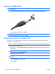 Ansluta en USB-enhet VIKTIGT: Undvik skada på USB-kontakten genom att använda så lite kraft som möjligt vid anslutning av en USB-enhet. ▲ Anslut en USB-enhet till datorn genom att ansluta enhetens USB-kabel till USB-porten. Du hör ett ljud när enheten har upptäckts. OBS! Första gången du ansluter en USB-enhet visas meddelandet ”Hittade ny maskinvara” i meddelandefältet längst till höger i Aktivitetsfältet.