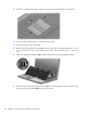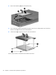 3. Lift the right side of the cover (2), swing it up and to the right, and remove the cover. The memory