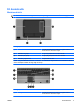 Jobb oldali összetevők HUWW Részegység Leírás (1) Hangkimeneti (fejhallgató-) aljzat Kiegészítő sztereó hangszórók, fejhallgató, fülhallgató, mikrofonos fejhallgató és televízió-hangszóró csatlakoztatása esetén hang játszható le vele. (2) Hangbemeneti (mikrofon-) aljzat Kiegészítő számítógépes fejhallgatóhoz tartozó mikrofon, illetve sztereó és monó mikrofon csatlakoztatására szolgál. (3) USB-portok (2, csak egyes típusokon) Kiegészítő USB-eszközök csatlakoztatására használható.