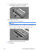 添加或更换内存模块 内存模块盒位于笔记本计算机底部。 要升级笔记本计算机的内存容量,可以在空的扩展内存模块插槽中添加内存模块,也可以升级主内存模 块插槽中的现有内存模块。 ZHCN 1