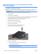 Sette inn eller bytte ut en minnemodul i det ekstra minnemodulsporet ADVARSEL: For å unngå elektrisk støt og skade på utstyret bør du koble fra strømledningen og ta ut alle batterier før du installerer en minnemodul. FORSIKTIG: Utlading av statisk elektrisitet kan skade elektroniske komponenter. Før du tar ut eller installerer komponenter, må du lade ut all statisk elektrisitet i kroppen ved å ta på en jordet metallgjenstand. Slik setter du inn eller bytter ut en minnemodul i det ekstra minnemodulsporet: 1.