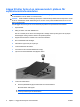 Lägga till eller byta ut en minnesmodul i platsen för expansionsminnesmodulen VARNING: Minska risken för elstötar och skada på utrustningen genom att dra ur nätsladden och ta ut alla batterier innan du sätter i en minnesmodul. VIKTIGT: Elektrostatiska urladdningar (ESD) kan orsaka skada på elektroniska komponenter. Se till att du är urladdad från statisk elektricitet genom att röra vid ett jordat metallföremål innan du rör vid datorns komponenter.