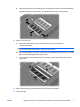 1 Lägga till eller byta ut minnesmoduler Minnesmodulfacket sitter på datorns undersida. Du kan uppgradera datorns minneskapacitet genom att lägga till en minnesmodul i det lediga facket för extra minnesmoduler eller genom att uppgradera den befintliga minnesmodulen i facket för primärminne.