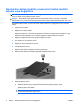 Birincil bellek modülü yuvasındaki bellek modülünü yükseltme UYARI! Elektrik çarpması ve donanıma zarar gelmesi riskini azaltmak için bellek modülünü takmadan önce tüm pilleri ve güç kablosunu fişten çıkarın. DİKKAT: Elektrostatik deşarj (ESD) elektronik bileşenlerde hasara yol açabilir. Yordamlara başlamadan önce, topraklı bir metal nesneye dokunarak statik enerjinizi boşalttığınızdan emin olun. Birincil bellek modülü yuvasındaki bellek modülünü yükseltmek için, şu adımları izleyin: 1.