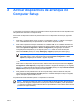 4 Escolher preferências do MultiBoot É possível utilizar o MultiBoot do seguinte modo: PTPT ● Para estabelecer uma nova sequência de arranque predefinida utilizada pelo computador sempre que este é ligado, alterando a sequência de arranque no Computer Setup. ● Para seleccionar dinamicamente o dispositivo de arranque, premindo f9 enquanto a mensagem “F9 = Boot device menu” é apresentada no campo inferior esquerdo do ecrã, durante o arranque do computador.