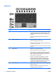 Elementy z prawej strony komputera PLWW Element Opis (1) Gniazdo wyjściowe audio (słuchawkowe) Odtwarza dźwięk po podłączeniu do opcjonalnych, zasilanych oddzielnie głośników, słuchawek, zestawu słuchawkowego lub dźwięku z telewizji. (2) Gniazdo wejściowe audio (mikrofonowe) Umożliwia podłączenie opcjonalnego mikrofonu zestawu słuchawkowego komputera, mikrofonu kolumny stereo lub mikrofonu monofonicznego. (3) Porty USB (2) (tylko wybrane modele) Umożliwiają podłączenie opcjonalnych urządzeń USB.