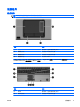 组件 说明 (3) 触摸板 移动指针,选择或激活屏幕上的项。 (4) 触摸板左按钮 功能类似于外接鼠标的左键。 (5) 触摸板中间按钮 功能类似于外接鼠标的中间键。 (6) 触摸板右按钮 功能类似于外接鼠标的右键。 (7) 触摸板滚动区 向上或向下滚动。 (8) 指点杆右按钮 功能类似于外接鼠标的右键。 (9) 指点杆中间按钮 功能类似于外接鼠标的中间键。 此表介绍的是出厂时的设置。要查看或更改指点设备首选项,请选择 Start(开始)> Control Panel(控制面板)> Hardware and Sound(硬件和声音)> Mouse(鼠标)。 4 第 2 章 组件 ZHCN