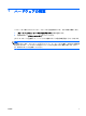 前面の各部 名称 (1) (2) (3) (4) 10 説明 無線ランプ 電源ランプ バッテリ ランプ ドライブ ランプ ● 点灯: 無線ローカル エリア ネットワーク(WLAN)デバイ ス、HP ブロードバンド無線モジュール、または Bluetooth デバイスなどの内蔵無線デバイスがオンになっています ● 消灯: すべての無線デバイスがオフになっています ● 点灯: コンピュータの電源がオンになっています ● 点滅: コンピュータがスリープ状態になっています ● すばやい点滅: より大きい定格電力の AC アダプタを接続す る必要があります ● 消灯: コンピュータの電源がオフになっているか、ハイバ ネーション状態になっています ● オレンジ色: バッテリが充電中です ● 緑色: バッテリが完全充電時に近い状態です ● オレンジ色で点滅: 電源にバッテリのみを使用している状 態で、ローバッテリ状態になっています。 完全なローバッ テリ状態になると、バッテリ ランプがすばやく点滅し始め ます ● 消灯: コンピュータが外部電源に接続されている場合は、