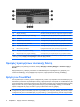 Στοιχείο Περιγραφή (1) Μοχλός κατάδειξης Μετακινεί το δείκτη και επιλέγει ή ενεργοποιεί στοιχεία στην οθόνη. (2) Αριστερό κουμπί του μοχλού κατάδειξης Λειτουργεί όπως το αριστερό κουμπί ενός εξωτερικού ποντικιού. (3) TouchPad Μετακινεί το δείκτη και επιλέγει ή ενεργοποιεί στοιχεία στην οθόνη. (4) Αριστερό κουμπί TouchPad Λειτουργεί όπως το αριστερό κουμπί ενός εξωτερικού ποντικιού. (5) Κεντρικό κουμπί του TouchPad Λειτουργεί όπως το κεντρικό κουμπί ενός εξωτερικού ποντικιού.