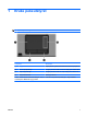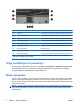 4 Bruke tastaturene Maskinen har et innebygd numerisk tastatur og støtter i tillegg et eksternt numerisk tastatur eller et eksternt tastatur med eget numerisk tastatur. MERK: Utseendet på maskinen din kan avvike litt fra illustrasjonen i dette avsnittet. NOWW Komponent Beskrivelse (1) fn-tast Utfører vanlige systemkommandoer når du trykker på den samtidig med en funksjonstast eller med esc-tasten.