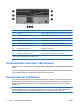 3 HP Quick Launch Buttons -painikkeiden käyttäminen Voit avata usein käytetyt ohjelmat HP:n Quick Launch buttons -pikakäynnistyspainikkeilla. HP Quick Launch Buttons -painikkeisiin kuuluvat Info-painike (1) ja Esitystila-painike (2). (1) Kohde Kuvaus Info-painike Käynnistää Info Centerin, jonka avulla voit avata jo asennettuja ohjelmistoja. Voit myös ohjelmoida tämän painikkeen suorittamaan jonkin seuraavista toimenpiteistä: (2) FIWW Esitystila-painike ● Avaa esitystilaominaisuus tai Q-valikko.
