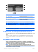 4 Używanie klawiatur numerycznych Komputer ma wbudowany blok klawiszy numerycznych, lecz można też używać opcjonalnej zewnętrznej klawiatury numerycznej lub opcjonalnej klawiatury zewnętrznej z wbudowaną klawiaturą numeryczną. UWAGA: Używany komputer może się trochę różnić od komputera pokazanego na ilustracji w tym rozdziale. PLWW Element Opis (1) Klawisz fn Umożliwia wykonywanie często używanych funkcji systemowych (po naciśnięciu razem z klawiszem funkcyjnym lub klawiszem esc).