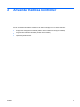 2 Använda trådlösa kontroller Du kan kontrollera de trådlösa enheterna i din dator med hjälp av en av dessa metoder: SVWW ● Knapp eller omkopplare för trådlöst (kallas i denna handbok för knapp för trådlöst) ● Programvaran Wireless Assistant (endast vissa modeller) ● Operativsystemkontroller 3