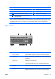 Tablica 1-3 Dijelovi tipkovnice (Nastavak) 1 4 8 Tipke s Windowsovim logotipom1 Koristi se za otvaranje Start izbornika u Microsoft Windows. Koristi se u kombinaciji s drugim tipkama za izvođenje drugih funkcija. 9 Tipke Alt Koriste se u kombinaciji s drugim tipkama; njihovo djelovanje ovisi o programu koji koristite. Tipke dostupne u odabranim zemljopisnim regijama.