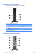 Tabel 1-2 Onderdelen aan de achterkant 1 Netsnoerconnector 6 VGA-monitorconnector (blauw) 2 DVI-D-monitorconnector (Digital Video Interface) (wit) 7 PS/2-muisconnector (groen) 3 PS/2-toetsenbordconnector (paars) 8 RJ-45-netwerkconnector 4 USB (Universal Serial Bus) (6) 9 Audio-ingang (blauw) 5 Uitgang voor audioapparaten met voeding (groen) OPMERKING: Aantal en indeling van de connectoren kunnen per model verschillen.