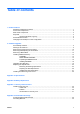 Table of contents 1 Product Features Standard Configuration Features ......................................................................................................... 1 Front Panel Components ..................................................................................................................... 2 Rear Panel Components ...................................................................................................................... 3 Keyboard .......................................