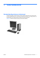 1 Toote funktsioonid Standardkonfiguratsiooni võimalused Õhukese korpusega HP Compaq lauaarvuti Ultra-Slim Desktop võimalused võivad mudeliti erineda. Arvutisse installitud täieliku riist- ja tarkvaraloendi vaatamiseks käivitage mõne mudeliga kaasas olev diagnostikautiliit. Selle utiliidi kasutamise juhised leiate tõrkeotsingujuhendist.