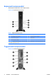 Tabel 1-2 Tagapaneeli komponendid 1 Toitejuhtme ühenduspesa 6 VGA-kuvari kaabli ühenduspesa (sinine) 2 Digitaalvideoliidese (Digital Video Interface; DVI–D) kuvarikaabli ühenduspesa (valge) 7 PS/2-pistikupesa hiire ühendamiseks (roheline) 3 PS/2-pistikupesa klaviatuuri ühendamiseks (lilla) 8 RJ-45 võrguliidese ühenduspesa 4 USB (Universal Serial Bus) (6) 9 Audio-liinisisendi ühenduspesa (sinine) 5 Liiniväljundi ühenduspesa sisselülitatud heliseadmetele (roheline) MÄRKUS.