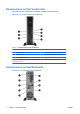 Tabelle 1-2 Komponenten auf der Rückseite 1 Netzkabelanschluss 6 VGA-Monitoranschluss (blau) 2 DVI-D (Digital Video Interface)Monitoranschluss (weiß) 7 PS/2-Mausanschluss (grün) 3 PS/2-Tastaturanschluss (lila) 8 RJ-45-Netzwerkanschluss 4 Universal Serial Bus (USB) (6) 9 Audio-Eingang (blau) 5 Ausgang für Audio-Geräte mit eigenem Netzteil (grün) HINWEIS: Die Anordnung und Anzahl der Anschlüsse kann von Modell zu Modell unterschiedlich sein.