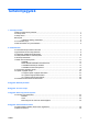 Tárgymutató A állapotjelző LED-ek 3 áramellátás tápkábel csatlakozója 3 B beépítési útmutató 8 behelyezés elem 31 memóriamodul 13, 15 merevlemez-meghajtó 18 optikai meghajtó 26 SODIMM 15 SODIMM modulok 13 bekapcsolás gomb 2 belső alkatrészek, hozzáférés 8 bemeneti aljzat 3 billentyűzet csatlakozó 3 részek 3 biztonság biztonsági zár HP üzleti célú számítógéphez 36 kábelzár 34 lakat 35 C CD-ROM meghajtó optikai meghajtó 2 CS csatlakozó DVI-D monitor 3 fejhallgató 2 hangbemenet 3 hangkimenet 3 mikrofon 2 PS/2
