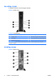 Az előlap részei A meghajtó-konfiguráció a típustól függően változhat. 1-2 ábra Az előlap részei 1-1 táblázat Az előlap részei 1 Optical Drive (Optikai meghajtó) 5 Tápfeszültségjelző LED 2 Fejhallgató-aljzat 6 Merevlemez-meghajtó működését jelző LED 3 Mikrofonaljzat 7 Az univerzális soros busz (USB) csatlakozói 4 Kétállású bekapcsológomb MEGJEGYZÉS: Optikai meghajtó a DVD-ROM, a kombinált DVD-CDRW meghajtó vagy a SuperMulti LightScribe-meghajtó.