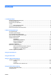 Innhold 1 Produktegenskaper Standard konfigurasjonsfunksjoner ...................................................................................................... 1 Frontpanelkomponenter ....................................................................................................................... 2 Komponenter på bakpanelet ................................................................................................................ 2 Tastatur ..................................................