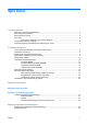 W wskazówki instalacyjne 8 wskaźniki stanu 3 wyjmowanie bateria 31 dysk twardy 18 napęd optyczny 23 panel dostępu 8 pokrywa portów 28 pokrywa przednia 9 zaślepki napędów 11 wyładowania elektrostatyczne, zapobieganie uszkodzeniom 38 wymiana baterii 31 Z zabezpieczenia blokada kablowa 34 Blokada zabezpieczająca komputera HP Business 36 kłódka 35 zalecenia dotyczące pracy komputera 39 zalecenia dotyczące wentylacji 39 zasilanie gniazdo kabla 3 przycisk 2 zakres napięcia roboczego 29 zatrzask zwalniający instal