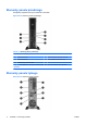 Tabela 1-2 Elementy panelu tylnego 1 Gniazdo kabla zasilającego 6 Złącze monitora VGA (niebieskie) 2 Złącze monitorowe DVI-D (Digital Video Interface) (białe) 7 Złącze myszy zgodnej ze standardem PS/2 (zielone) 3 Złącze klawiatury PS/2 (purpurowe) 8 Złącze sieciowe RJ-45 4 Port USB (Universal Serial Bus) (6) 9 Wejściowe złącze audio (niebieskie) 5 Złącze wyjścia liniowego dla zasilanych urządzeń audio (zielone) UWAGA: Układ i liczba złączy różnią się w zależności od modelu komputera.