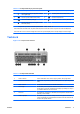 Tabelul 1-3 Componentele tastaturii (Continuare) 1 4 8 Taste cu sigla Windows1 Se utilizează pentru deschiderea meniului Start din Microsoft Windows. Se utilizează în combinaţie cu alte taste pentru efectuarea altor funcţii. 9 Taste Alt Se utilizează în combinaţie cu altă tastă; efectul depinde de software-ul de aplicaţie pe care îl utilizaţi. Taste disponibile în anumite regiuni geografice.