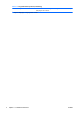 Index A anvisningar, användning av datorn 39 B bildskärm, anslutning byta batteri 31 låsa HP Business PC Säkerhetslås 36 kabellås 34 tangentbordslås 35 låsa upp åtkomstpanel 34 3 C CD ROM-spelare optisk enhet 2 D dator anvisningar för användning 39 funktioner 1 förberedelser för transport 40 specifikationer 29 säkerhetslås 34 ändra från bordsdator till minitower 6 drivenhet installera en optisk enhet 26 ta bort en optisk enhet 23 uppgradera hårddisk 18 DVD ROM-enhet optisk enhet 2 DVI D-bildskärmsanslut