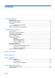 Innehåll 1 Produktens funktioner Standardfunktioner ............................................................................................................................... 1 Komponenter på frontpanelen .............................................................................................................. 2 Komponenter på baksidan ................................................................................................................... 2 Tangentbord ..................................