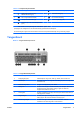 Tabell 1-3 Tangentbordskomponenter (fortsättning) 9 1 4 Alt-tangenter Används i kombination med någon annan tangent. Deras funktion beror på vilket program du använder. Tangenter tillgängliga i vissa geografiska områden.