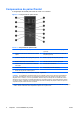 Componentes do leitor de cartões multimédia O leitor de cartões multimédia é um dispositivo óptico disponível apenas em alguns modelos. Consulte a seguinte ilustração e a tabela para identificar os componentes do leitor de cartões multimédia. Figura 1-3 Componentes do leitor de cartões multimédia Tabela 1-2 Componentes do leitor de cartões multimédia 1 2 3 PTPT SmartMedia/xD ● Cartão SmartMedia 3.