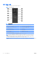 키보드 그림 1-5 키보드 부품 표 1-4 키보드 부품 1 KOWW 1 기능 키 사용하는 소프트웨어 응용프로그램에 따라 특정 기능을 수행합니다. 2 편집 키 Insert, Home, Page Up, Delete, End 및 Page Down 등이 포함됩니다. 3 상태 표시등 컴퓨터와 키보드 설정 상태(Num Lock, Caps Lock 및 Scroll Lock)를 표시합니다. 4 숫자 키 계산기 키패드와 같은 기능을 제공합니다. 5 화살표 키 문서나 웹 사이트에서 이동할 때 사용합니다. 마우스 대신 키보드를 사용하여 왼 쪽, 오른쪽, 위쪽 및 아래쪽으로 이동할 수 있습니다. 6 Ctrl 키 다른 키와 조합하여 사용되며 사용하는 응용프로그램 소프트웨어에 따라 기능이 다릅니다. 7 응용프로그램 키 1 Microsoft Office 응용프로그램에서 마우스 오른쪽 버튼처럼 팝업 메뉴를 열 때 사 용됩니다.