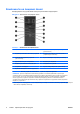 Клавиатура Фигура 1-5 Компоненти на клавиатурата Таблица 1-4 Компоненти на клавиатурата 1 BGWW 1 Функционални клавиши Изпълняват специални функции в зависимост от използваното софтуерно приложение. 2 Клавиши за редактиране Това са: Insert, Home, Page Up, Delete, End и Page Down. 3 Индикатори за състоянието Показват състоянието на компютъра и клавиатурните настройки (Num Lock, Caps Lock и Scroll Lock). 4 Цифрови клавиши Работят като клавиатура на калкулатор.