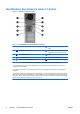 Clavier Figure 1-5 Éléments du clavier Tableau 1-4 Éléments du clavier 1 FRWW 1 Touches de fonction Ces touches permettent d’effectuer des fonctions spéciales, selon l’application utilisée. 2 Touches d’édition Exemples : Inser, origine, Page précédente, Suppr, Fin et Page suivante. 3 Voyants d’état Indiquent l’état des paramètres de l’ordinateur et du clavier (Verr num, Verr maj et Arrêt défil).