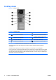 Billentyűzet 1-5 ábra A billentyűzet részei 1-4 táblázat A billentyűzet részei 1 HUWW 1 Funkcióbillentyűk A használt alkalmazástól függően speciális feladatokat hajtanak végre. 2 Szerkesztő billentyűk A következő billentyűkből áll: Insert (Beszúrás), Home (Elejére), Page Up (Lapozás vissza), Delete (Törlés), End (Végére) és Page Down (Lapozás előre). 3 Állapotjelző LED-ek A számítógép és a billentyűzet beállításainak állapotát jelzik (Num Lock, Caps Lock és Scroll Lock).