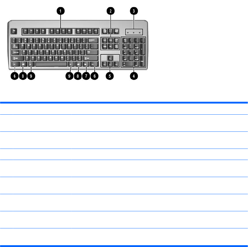 3 Állapotjelző LED-ek A számítógép és a billentyűzet beállításainak állapotát jelzik (Num Lock, Caps Lock