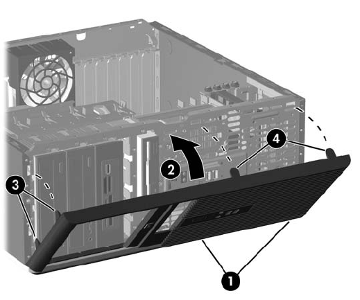 1. Illessze az előlap alsó pántjait a ház megfelelő nyílásaihoz (1).