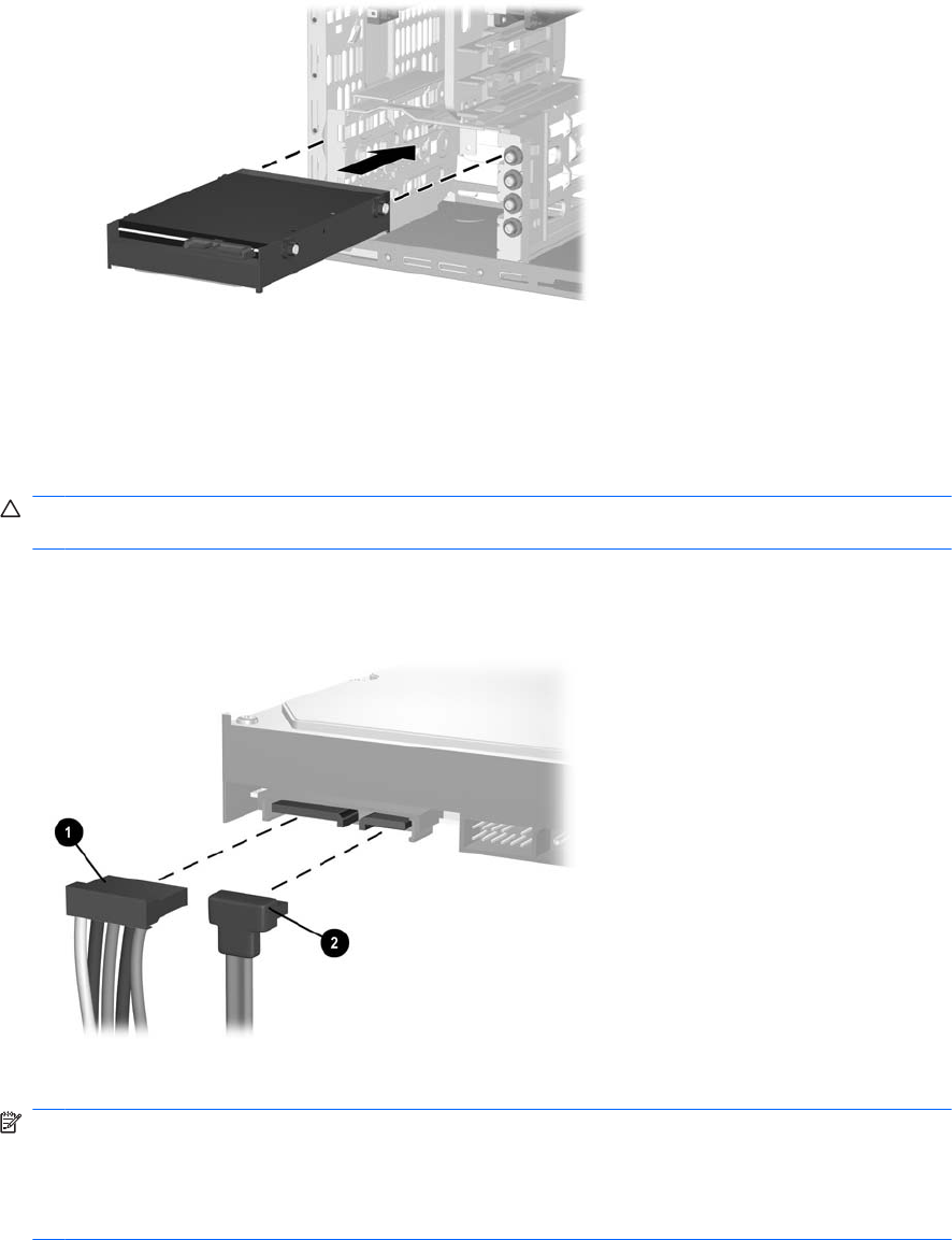 2-25 ábra Merevlemez-meghajtó behelyezése a merevlemezmeghajtó-rekeszbe
