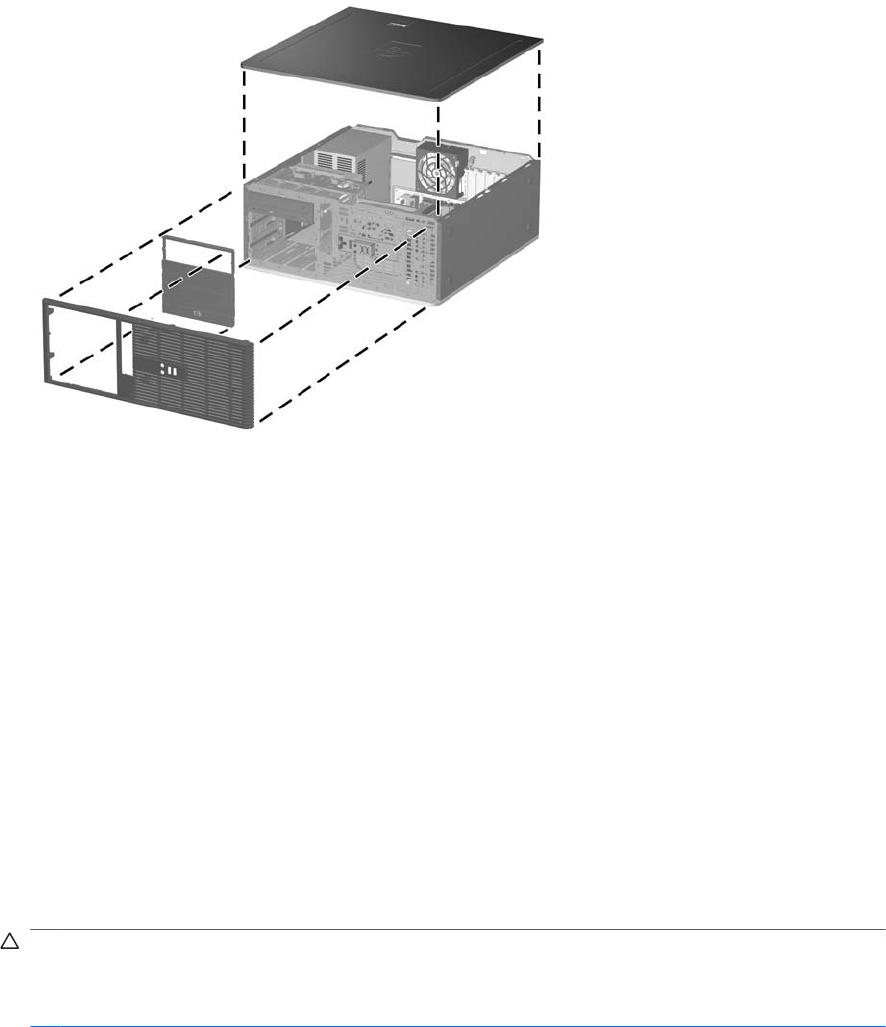 15. Helyezze vissza az előlapot és a számítógép oldallapját.