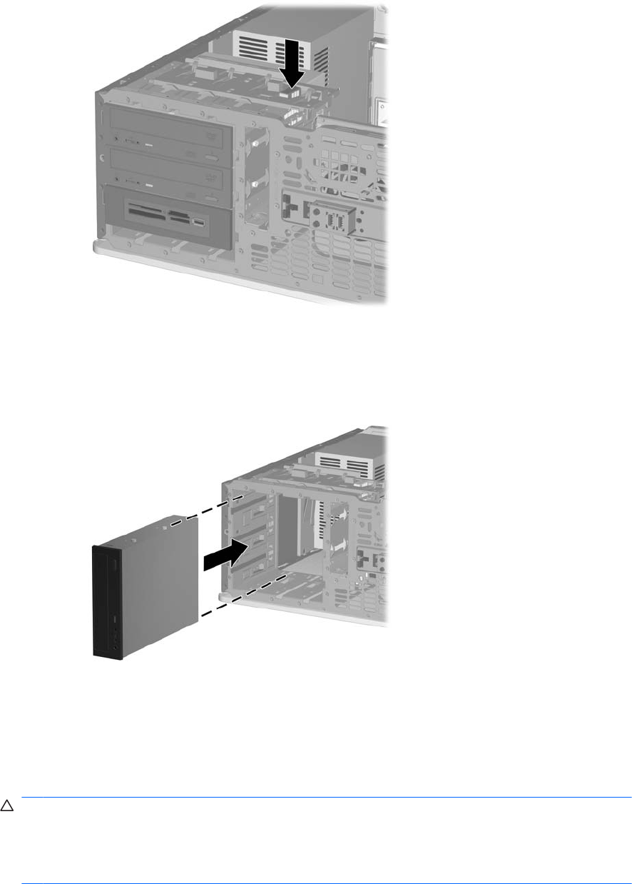 10. Óvatosan csúsztassa a meghajtót a legfelső szabad rekeszbe, amíg a helyére nem kattan. A