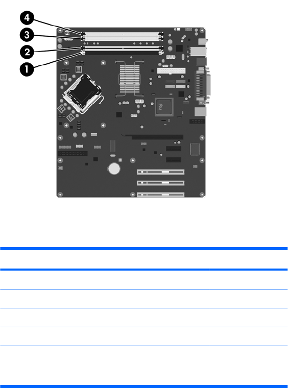 Det finnes fire DIMM-sokler på systemkortet, med to sokler per kanal. Soklene er merket XMM1, XMM2,