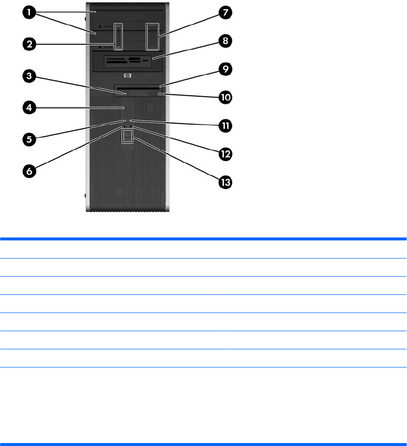 Tabell 1-1 Frontpanelkomponenter