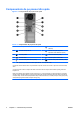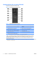 Componentele cititorului de cartele Cititorul de cartele este un dispozitiv opţional, disponibil numai pe unele modele. Consultaţi ilustraţia şi tabelul următor, pentru identificarea componentelor cititorului de cartele.