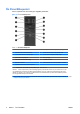 Ortam Kartı Okuyucu Bileşenleri Ortam kartı okuyucu, yalnızca bazı modellerde bulunan isteğe bağlı bir aygıttır. Ortam kartı okuyucu bileşenlerini tanımlamak için aşağıdaki şekle ve tabloya bakın. Şekil 1-3 Ortam Kartı Okuyucu Bileşenleri Tablo 1-2 Ortam Kartı Okuyucu Bileşenleri 1 2 3 TRWW SmartMedia/xD ● 3.
