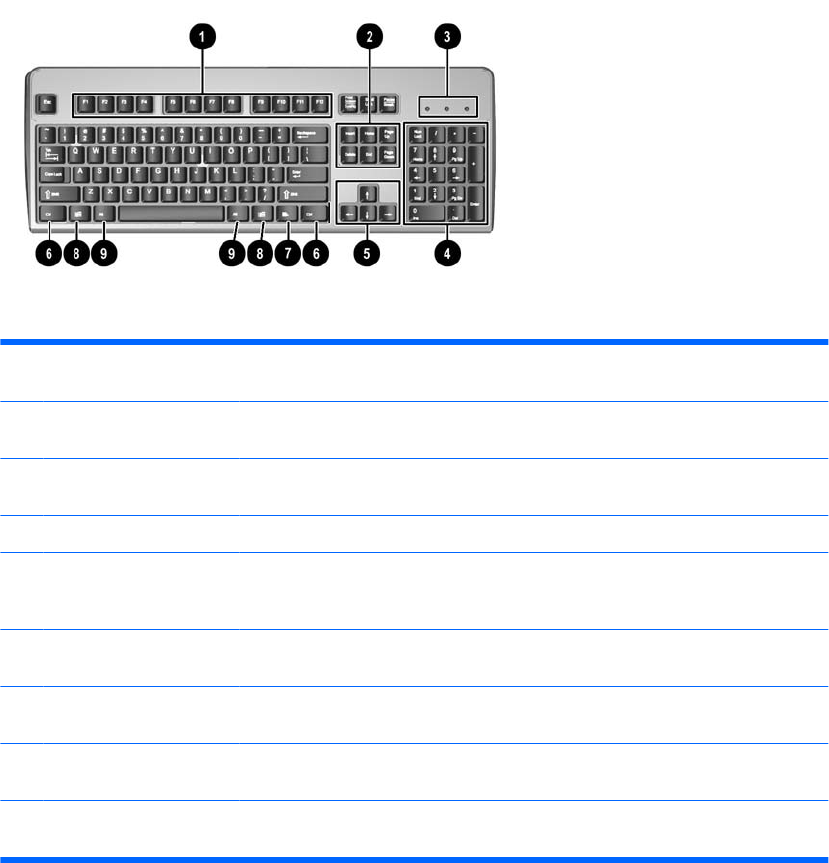 Tabel 1-4 Onderdelen van het toetsenbord