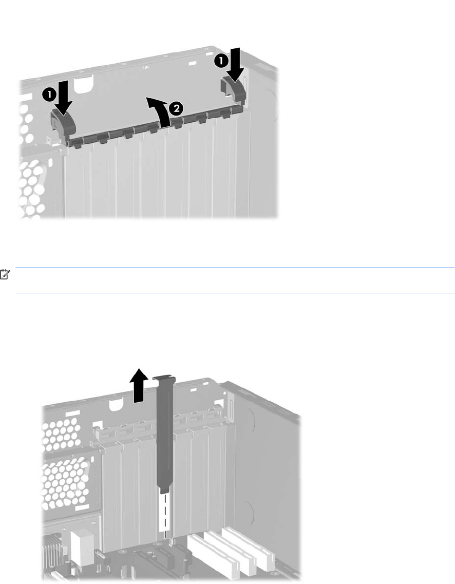 Afbeelding 2-10 Borgbeugel voor uitbreidingskaarten openen