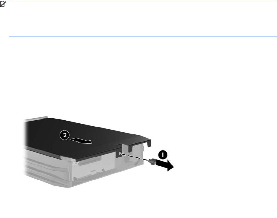 2. Verwijder de schroef aan de achterkant van de houder (1) en schuif het bovenpaneel van de houder