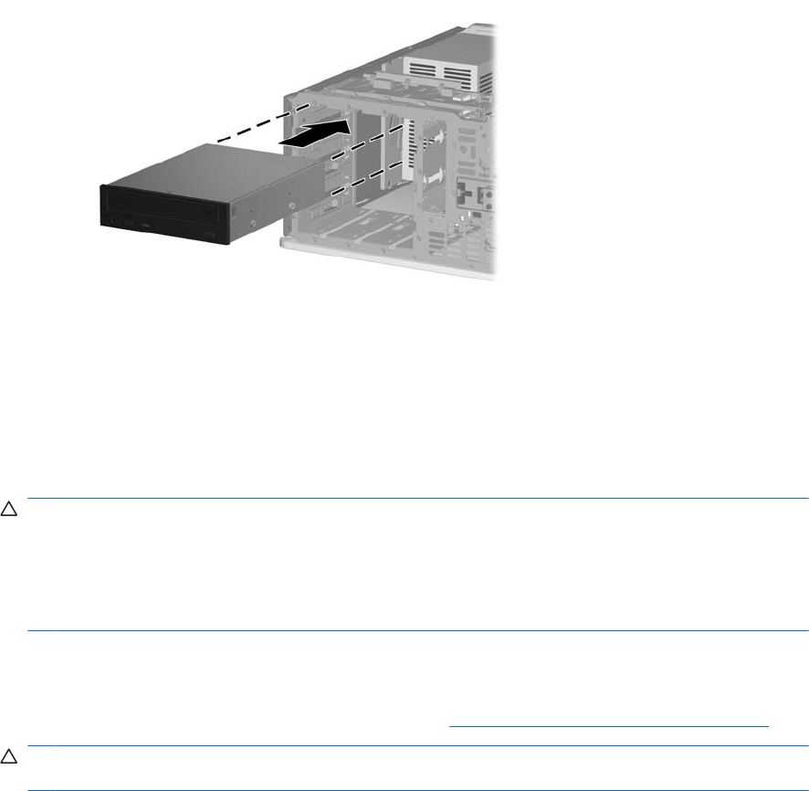 VOORZICHTIG: De onderste schijfpositie van 5,25 inch is minder diep dan de bovenste twee